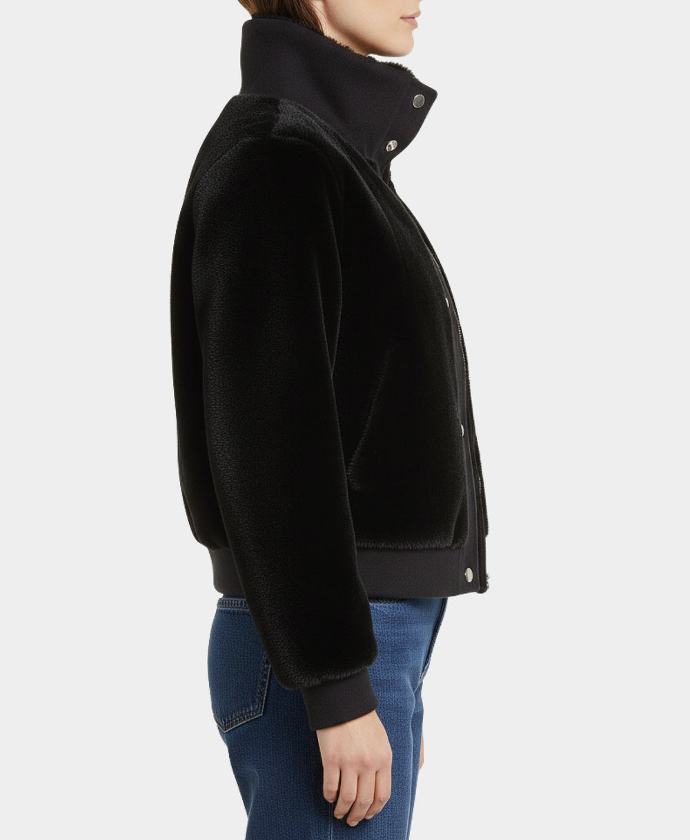 Shiny Puffer Down Jacket w/ Sherpa Trim