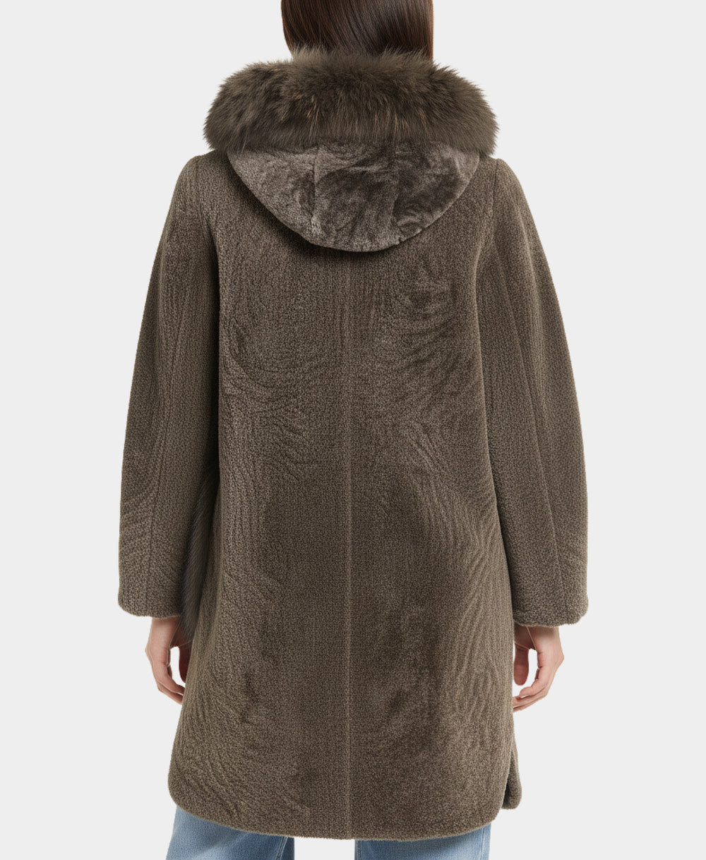 Cropped Shearling Jacket w/ Fox Fur Trim