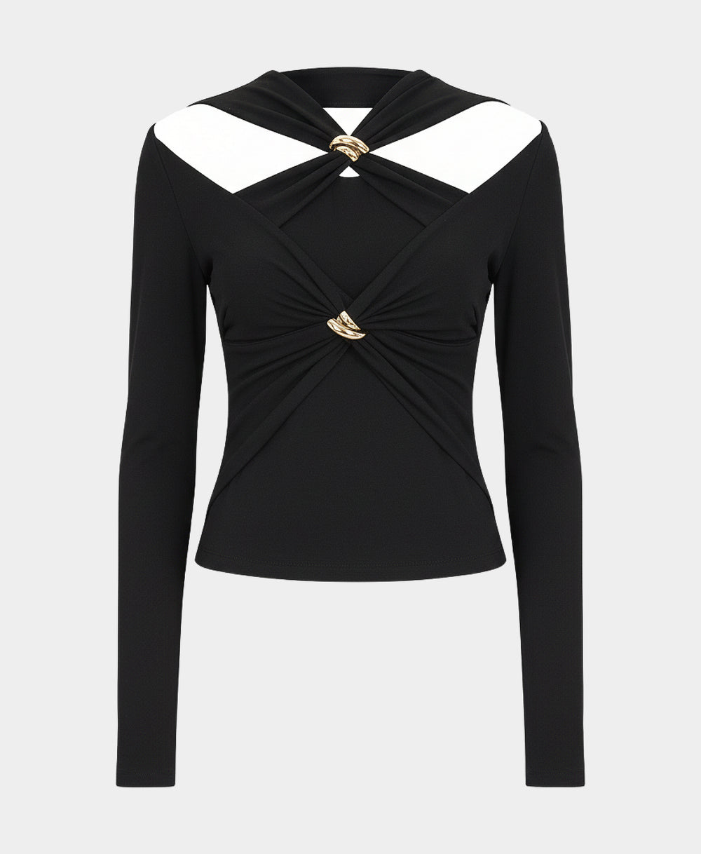 Contrast Knit Top & Pants Set- 2 Pc Set