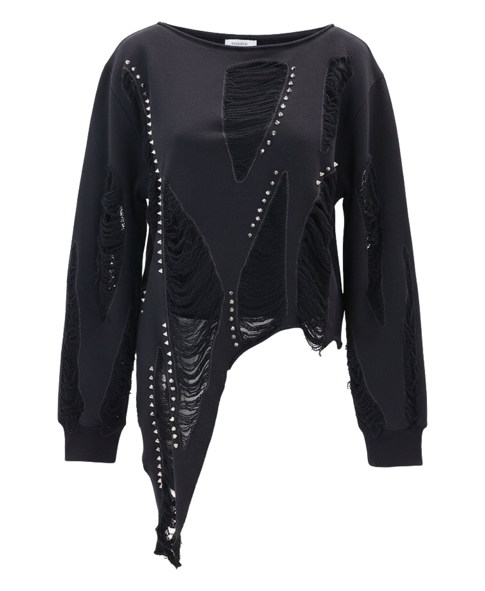 - Asymmetrical Shredded Sweatshirt w/ Studs