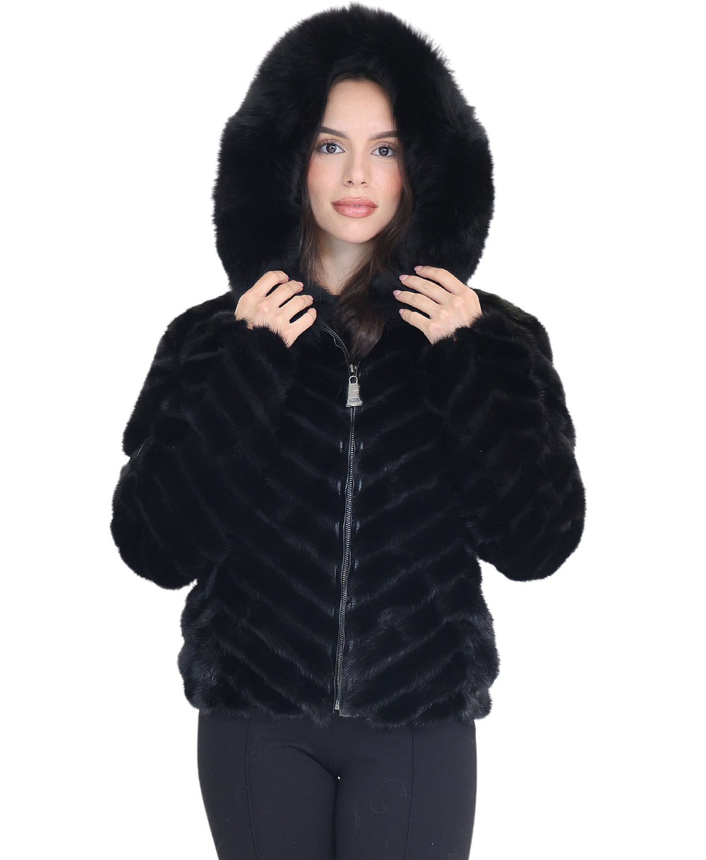 - Mink Bomber Jacket w/ Fox Fur Trim Hood