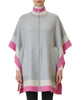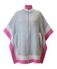 - Colorblock Poncho w/ Fox Fur Trim Pockets