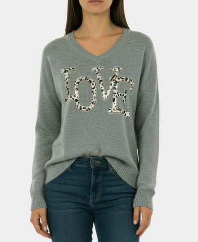 - "Love" Knit Top w/ Leopard Sequin