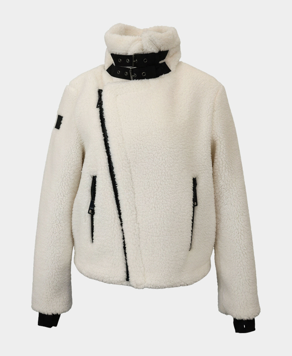Shiny Puffer Down Jacket w/ Sherpa Trim