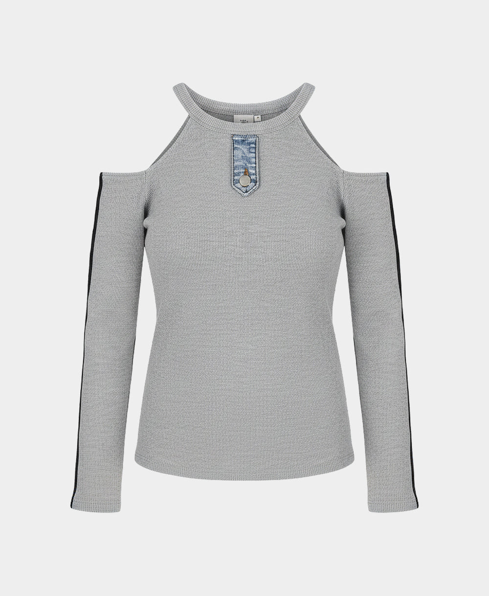 Cold Shoulder Asymmetrical Top w/ Studs & Hood