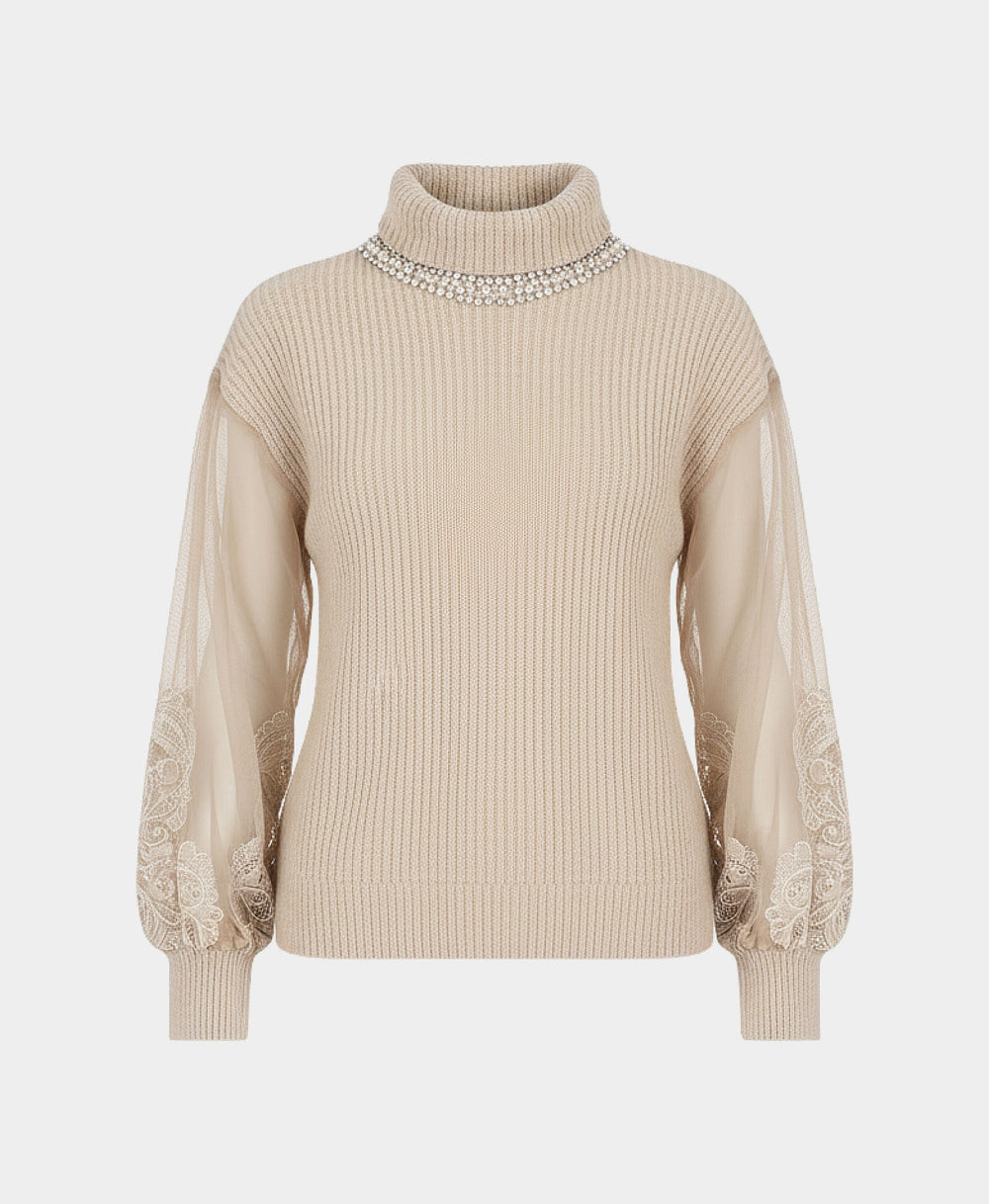 Turtleneck Sweater w/ Faux Fur Cuffs
