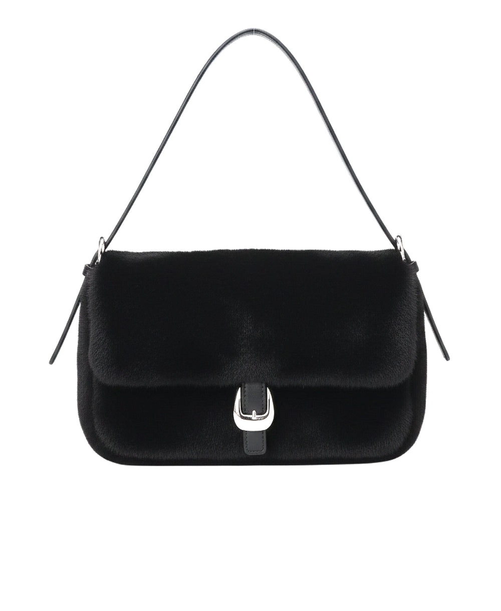- Faux Fur Shoulder Bag w/ Buckle Detail